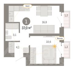 Видовая евро-двухкомнатная квартира, 2 балкона, окна на восток, соответствует концепции Васту, гармония и благополучие