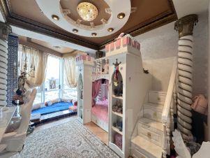 Общая площадь квартиры 94,5 кв. м, её окна открывают потрясающие панорамы Москвы, а удобное и продуманное планировочное решение дарит комфорт каждому члену семьи. Квартира состоит из трёх изолированных комнат: просторной родительской спальни; волшебной комнаты для маленькой принцессы, наполненной красками, которая дарит ощущение сказки и вдохновения; более сдержанной комнаты для подростка, располагающей к уединению и самовыражению - большой кухни, гардеробной, постирочной и совмещённого санузла.