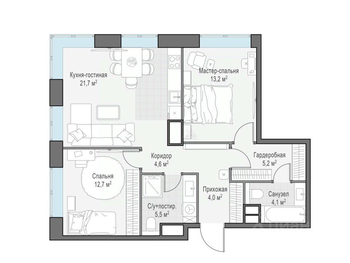 Комфортная и продуманная до мелочей 2-спальная квартира площадью 71.30 кв. м на 13 этаже в клубном доме 3939256 (14). Увеличенная площадь окон и высота потолков 3.13 м дарят впечатляющие виды на парки, зеленые зоны и природные заказники.