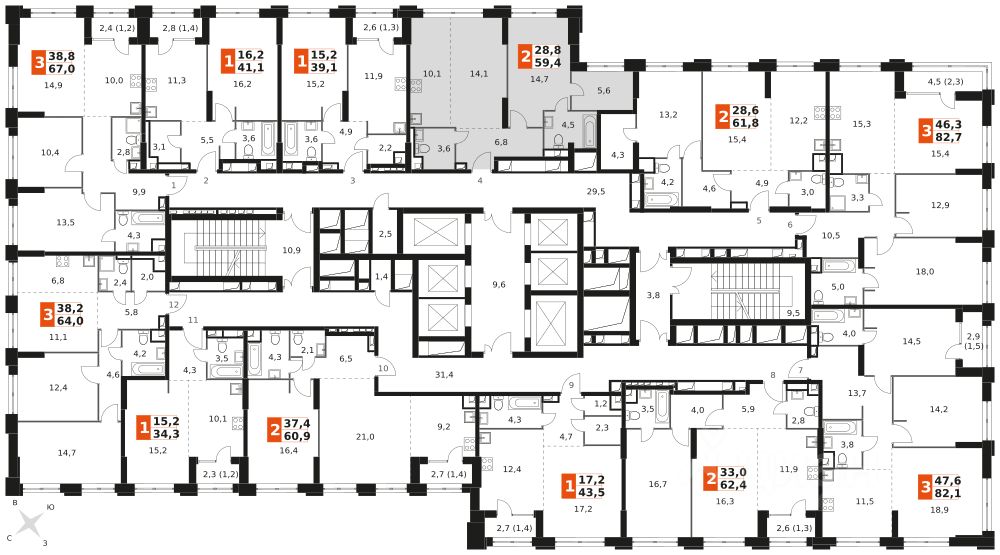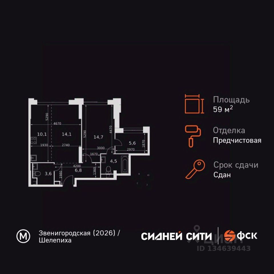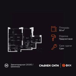 Продаётся 2-к квартира номер 146 общей площадью 59.4 кв.м. на 14-м этаже 43 этажного здания. Предчистовая отделка. Цена с учётом скидки.