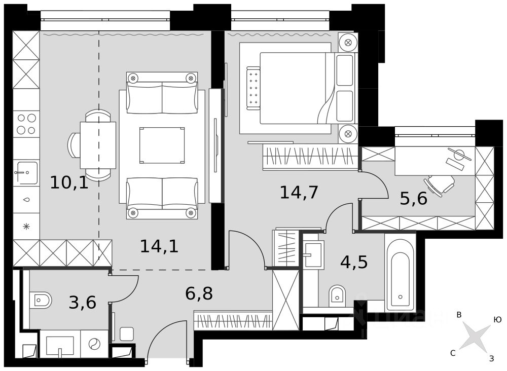 - Мастер-зона с санузлом. Уют и комфорт в одном пространстве.