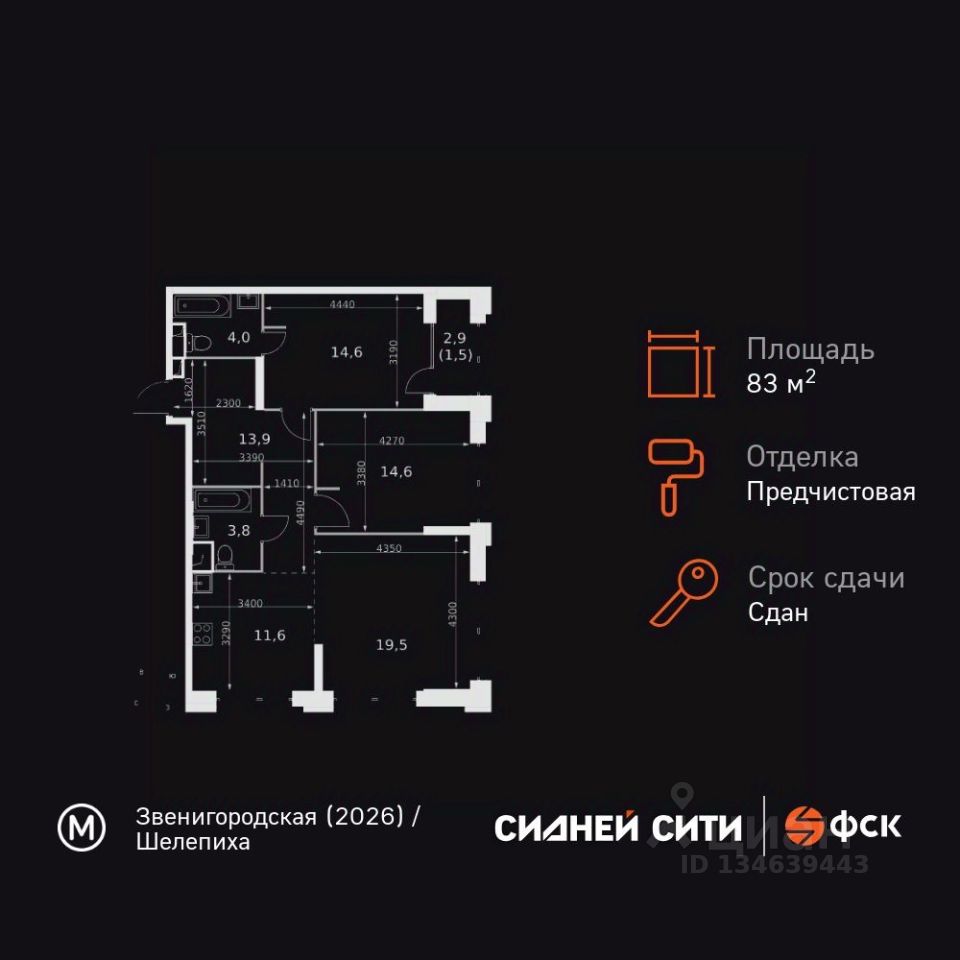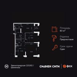 Продаётся 3-к квартира номер 255 общей площадью 83.5 кв.м. на 23-м этаже 43 этажного здания. Предчистовая отделка. Цена с учётом скидки.