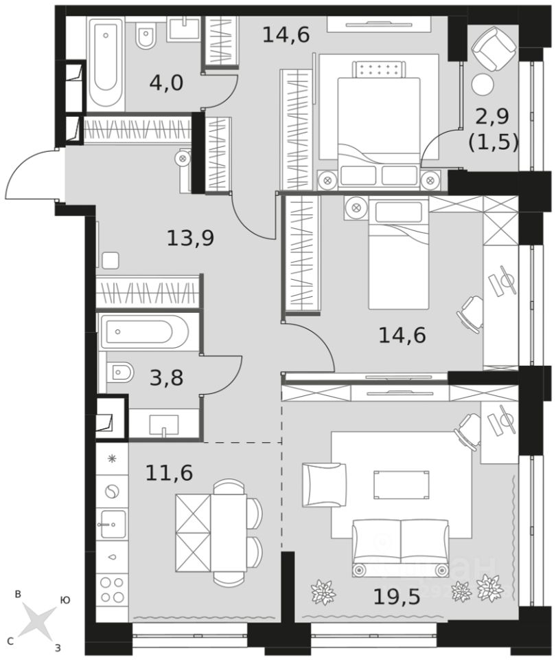 - Мастер-зона с санузлом. Уют и комфорт в одном пространстве.