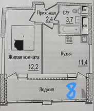 общая площадь 38,сама жилая площадь 30 метров,а лоджия почти 9.