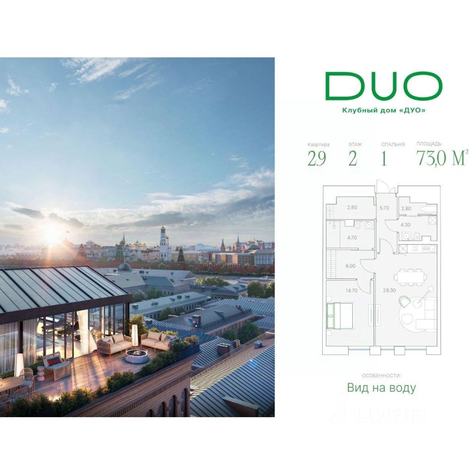 Клубный дом DUO расположен в самом центре города, на Софийской набережной острова Балчуг в нескольких минутах от Кремля. DUO воплощает в себе дуальность наследия прошлого и архитектуры будущего. Историческое наследие дополняется современными архитектурными решениями и технологиями, создавая пространство вне времени. Всего в DUO будет 51 квартира коллекционного уровня, среди которых семь особенных лотов: четыре пентхауса, две двухуровневые квартиры, а также роскошный пентхаус площадью 1182 кв. м с собственным лифтом, камином, бассейном и террасой, откуда весь центр столицы виден как на ладони. Площадь квартир варьируется от 48 до 1182 кв. м, а из 75% лотов будут открываться живописные виды на Москву-реку. Клубный формат Duo раскрывается не только в малом числе квартир, но и в приватной инфраструктуре высокого класса. Для душевного вечера в кругу друзей можно будет зайти в винный зал или устроить закрытый сеанс в кинозале с мягкими диванами. В бизнес-гостиной — комфортно провести встречу, а детей на это время оставить в уютной детской комнате. В доме также будет работать фитнес-клуб с современными тренажерами и другим необходимым оборудованием для эффективных тренировок, а расслабиться после насыщенного дня можно в собственном спа-комплексе DUО.