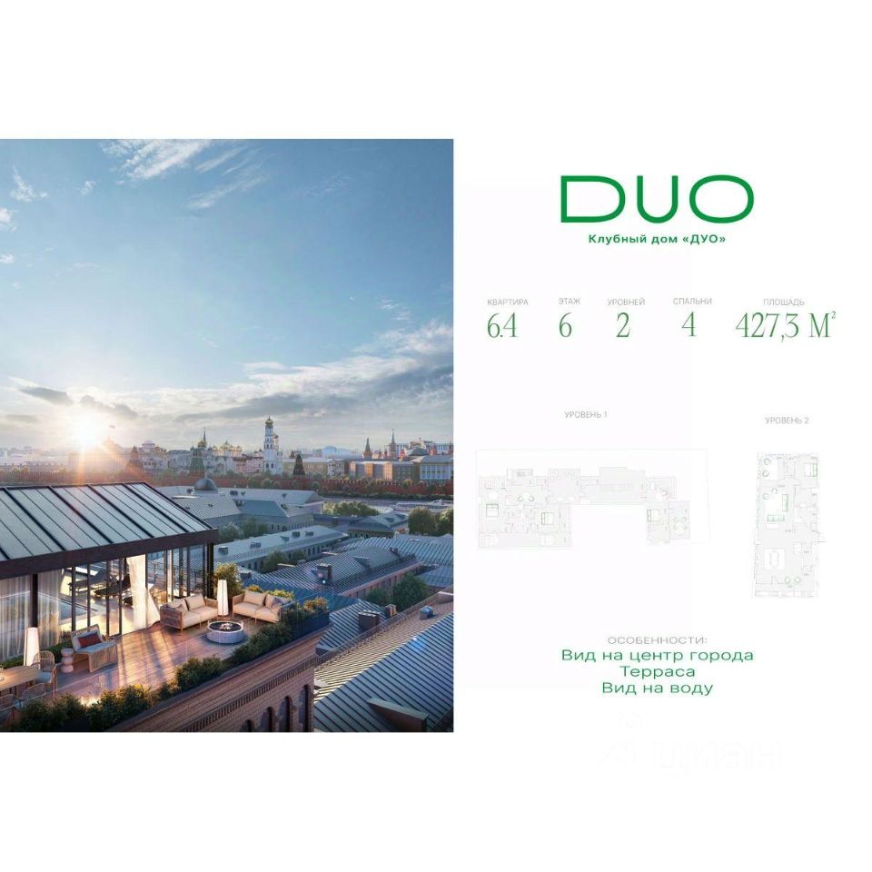 Клубный дом DUO расположен в самом центре города, на Софийской набережной острова Балчуг в нескольких минутах от Кремля. DUO воплощает в себе дуальность наследия прошлого и архитектуры будущего. Историческое наследие дополняется современными архитектурными решениями и технологиями, создавая пространство вне времени. Всего в DUO будет 51 квартира коллекционного уровня, среди которых семь особенных лотов: четыре пентхауса, две двухуровневые квартиры, а также роскошный пентхаус площадью 1182 кв. м с собственным лифтом, камином, бассейном и террасой, откуда весь центр столицы виден как на ладони. Площадь квартир варьируется от 48 до 1182 кв. м, а из 75% лотов будут открываться живописные виды на Москву-реку. Клубный формат Duo раскрывается не только в малом числе квартир, но и в приватной инфраструктуре высокого класса. Для душевного вечера в кругу друзей можно будет зайти в винный зал или устроить закрытый сеанс в кинозале с мягкими диванами. В бизнес-гостиной — комфортно провести встречу, а детей на это время оставить в уютной детской комнате. В доме также будет работать фитнес-клуб с современными тренажерами и другим необходимым оборудованием для эффективных тренировок, а расслабиться после насыщенного дня можно в собственном спа-комплексе DUО.