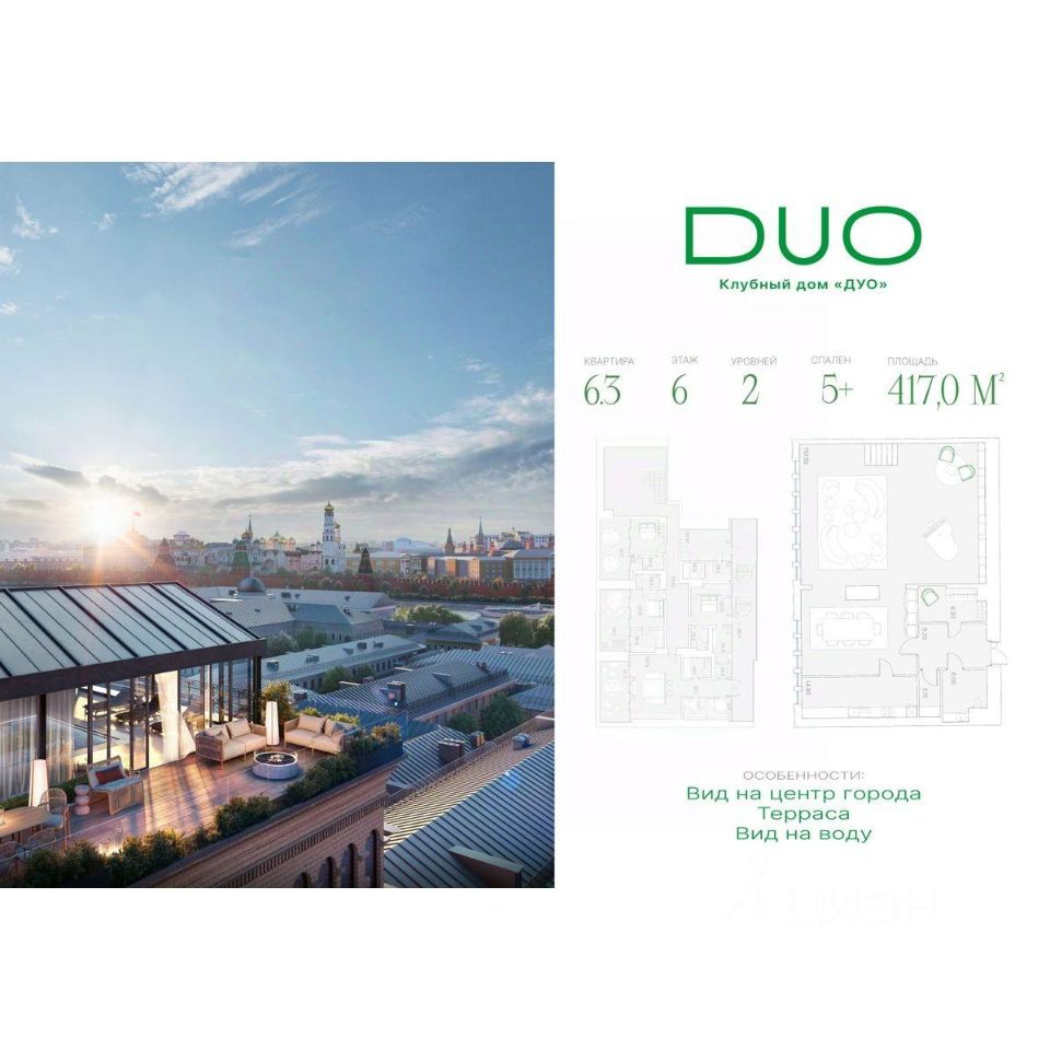 Клубный дом DUO расположен в самом центре города, на Софийской набережной острова Балчуг в нескольких минутах от Кремля. DUO воплощает в себе дуальность наследия прошлого и архитектуры будущего. Историческое наследие дополняется современными архитектурными решениями и технологиями, создавая пространство вне времени. Всего в DUO будет 51 квартира коллекционного уровня, среди которых семь особенных лотов: четыре пентхауса, две двухуровневые квартиры, а также роскошный пентхаус площадью 1182 кв. м с собственным лифтом, камином, бассейном и террасой, откуда весь центр столицы виден как на ладони. Площадь квартир варьируется от 48 до 1182 кв. м, а из 75% лотов будут открываться живописные виды на Москву-реку. Клубный формат Duo раскрывается не только в малом числе квартир, но и в приватной инфраструктуре высокого класса. Для душевного вечера в кругу друзей можно будет зайти в винный зал или устроить закрытый сеанс в кинозале с мягкими диванами. В бизнес-гостиной — комфортно провести встречу, а детей на это время оставить в уютной детской комнате. В доме также будет работать фитнес-клуб с современными тренажерами и другим необходимым оборудованием для эффективных тренировок, а расслабиться после насыщенного дня можно в собственном спа-комплексе DUО.