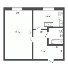 Квартира площадью 38,4 м² с жилой зоной 19,3 м² и уютной кухней 8,3 м². Планировка включает совмещённый санузел и просторный холл. Объект находится на 2 этаже 14-этажного панельного дома с чистым подъездом и спокойными соседями. Состояние отличное, после продажи по договорённости может остаться мебель.