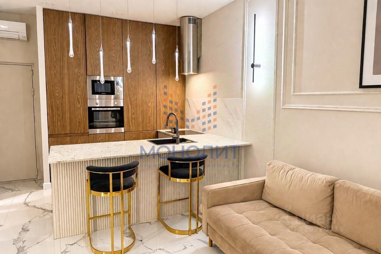 Современная дизайнерская квартира в ЖК Headliner с видом на Москва-Сити.