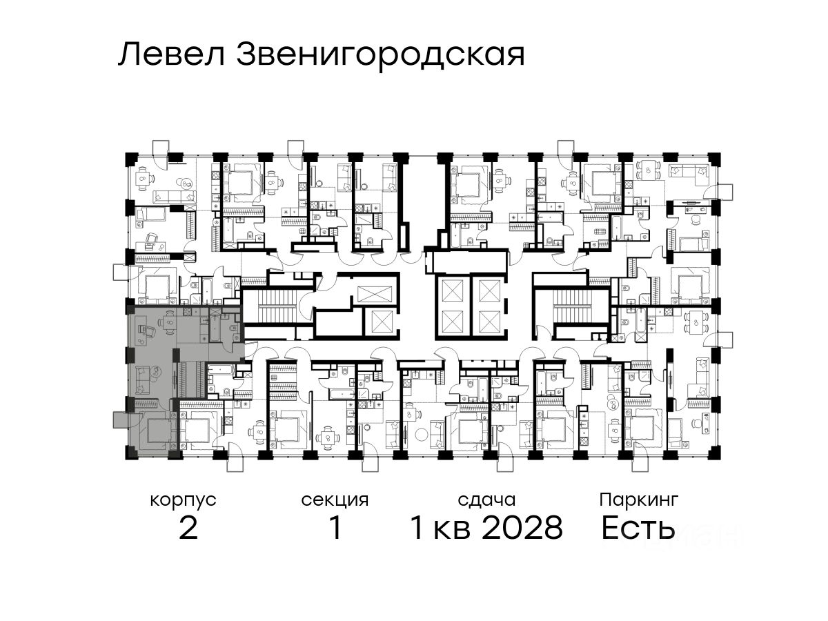 В жилом квартале продаётся 2-комнатная квартира площадью 53.50 кв.м без отделки. Квартира расположена на 18 этаже 64 этажного корпуса 2 в жилом комплексе комфорт класса Левел Звенигородская (компания Level Group/Левел групп).