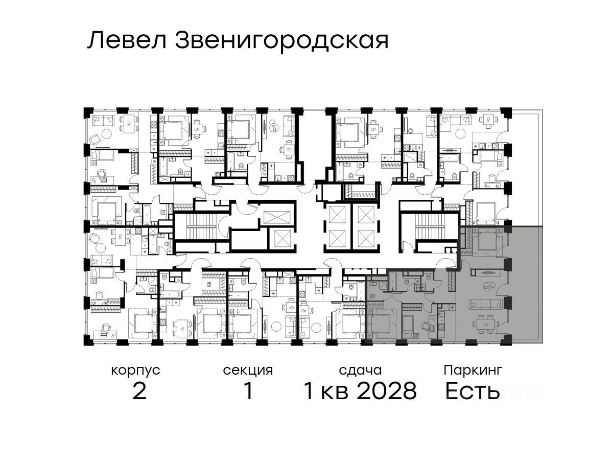 В жилом квартале продаётся 4-комнатная квартира площадью 99.50 кв.м без отделки. Квартира расположена на 22 этаже 64 этажного корпуса 2 в жилом комплексе комфорт класса Левел Звенигородская (компания Level Group/Левел групп).