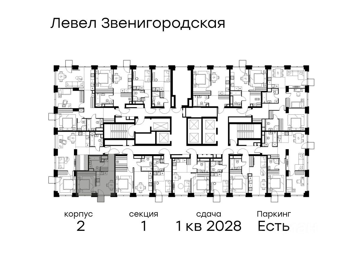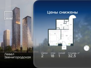 В жилом квартале продаётся 1-комнатная квартира площадью 32.50 кв.м без отделки. Квартира расположена на 18 этаже 64 этажного корпуса 2 в жилом комплексе комфорт класса Левел Звенигородская (компания Level Group/Левел групп).