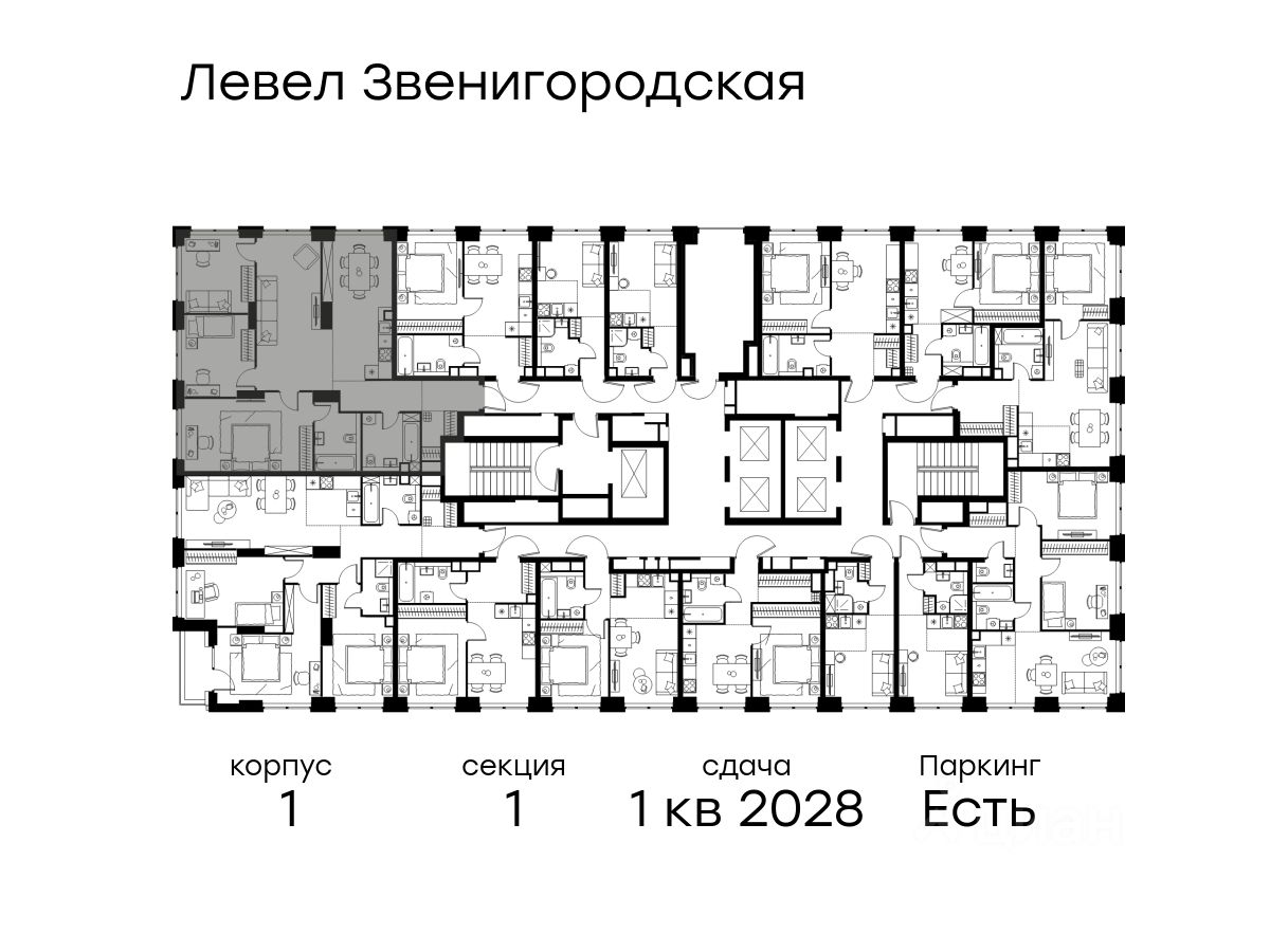 В жилом квартале продаётся 4-комнатная квартира площадью 101.80 кв.м с предчистовой отделкой. Квартира расположена на 3 этаже 48 этажного корпуса 1 в жилом комплексе комфорт класса Левел Звенигородская (компания Level Group/Левел групп).
