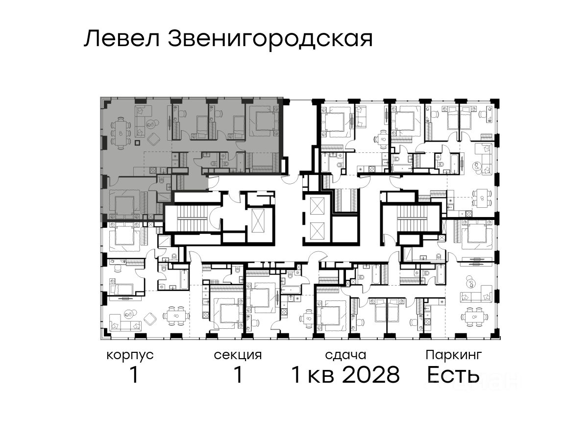 В жилом квартале продаётся многокомнатная квартира площадью 121.70 кв.м с предчистовой отделкой. Квартира расположена на 48 этаже 48 этажного корпуса 1 в жилом комплексе комфорт класса Левел Звенигородская (компания Level Group/Левел групп).