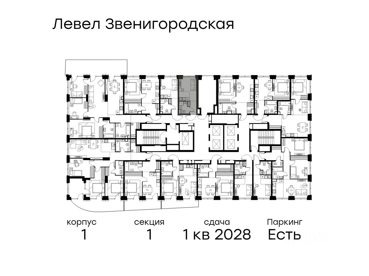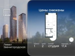 В жилом квартале продаётся студия площадью 17.40 кв.м с предчистовой отделкой. Квартира расположена на 2 этаже 48 этажного корпуса 1 в жилом комплексе комфорт класса Левел Звенигородская (компания Level Group/Левел групп).