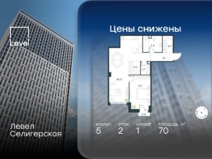 В жилом квартале, расположенном в южной части района Западное Дегунино, продаётся 1-комнатная квартира площадью 70.00 кв.м без отделки. Квартира расположена на 2 этаже 40-этажного корпуса 5 в жилом комплексе комфорт-класса Левел Селигерская (компания Level Group/Левел групп).
