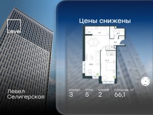 Цена указана с учётом скидки при 100%-й оплате, несубсидированной ипотеке, рассрочке (кроме программы "Рассрочка 0%"). В жилом квартале, расположенном в южной части района Западное Дегунино, продаётся 2-комнатная квартира площадью 66.10 кв.м без отделки. Квартира расположена на 5 этаже 40-этажного корпуса 3 в жилом комплексе комфорт-класса Левел Селигерская (компания Level Group/Левел групп). Отличная транспортная доступность: - 10 мин. пешком до станции метро "Верхние Лихоборы"; - 15 мин. пешком до станции метро "Селигерская"; - 20 мин. пешком до станции МЦД-3 "Моссельмаш"; - 11 мин. на авто до МКАД; - 13 мин. на авто до ТТК; - 16 мин. на авто до Садового кольца. Расположение Район отличается богатой социальной инфраструктурой: школы, детские сады, поликлиники, магазины, фитнес-клубы, торговые центры - всё близко к дому. Рядом с Левел Селигерская расположено 5 парковых зон. В 3 минутах от дома расположен перспективный сквер-парк. В 10 минутах пешком находится парк им. Святослава Фёдорова, в 13 минутах на велосипеде - парк "Ангарские пруды". В 7-11 минутах на автомобиле - два крупных природных объекта: Тимирязевский парк и Главный ботанический сад Российской академии наук. Благоустройство Внутренние дворы жилого комплекса огорожены от машин, а их функциональное наполнение отличается в зависимости от очереди строительства. На территории 2-й очереди жителей ждут уютные навесы с качелями, павильон-читальня, волейбольная площадка, беседки, а также детские и спортивные площадки. Технологии и инженерия Для входа на территорию комплекса предусмотрен единый ключ доступа. Все общественные зоны оснащены камерами видеонаблюдения, по заявке собственнику предоставляется возможность просмотра изображения отдельных видеокамер на его мобильном устройстве. При въезде в паркинг функционирует система распознавания госномеров. Кроме того, для комфорта жителей создано мобильное приложение, с помощью которого можно удаленно контролировать доступ на придомовую и жилую территории. Другие преимущества жилого комплекса - Высокая освещённость квартир: в большинстве из них не менее трёх окон; - Супермаркет, магазины, кафе, пекарни и многое другое на первых этажах домов; - Частный детский сад; - Стильные дизайнерские лобби с высокими потолками до 4,3 м. и окнами в пол, для питомцев предусмотрена лапомойка; - 30+ планировочных решений: от компактных студий до просторных семейных квартир; - С каждого этажа дома на лифте можно спуститься в подземный отапливаемый паркинг."