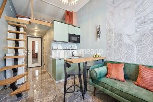 Номер лота: 101078. Продаются уникальные двухуровневые апартаменты в центре Москвы с потолками 3,5 м, что создаёт ощущение простора и уюта. Апартаменты выполнены в стиле лофт с использованием натуральных материалов и современного дизайна. Полностью укомплектованы мебелью и техникой — можно сразу сдавать в аренду без дополнительных вложений. За три года посуточной аренды средняя загрузка превышает 85%, обеспечивая стабильный доход. Второй уровень выделен под спальню с кирпичными акцентами, также предусмотрены вместительные зоны хранения и качественное освещение.