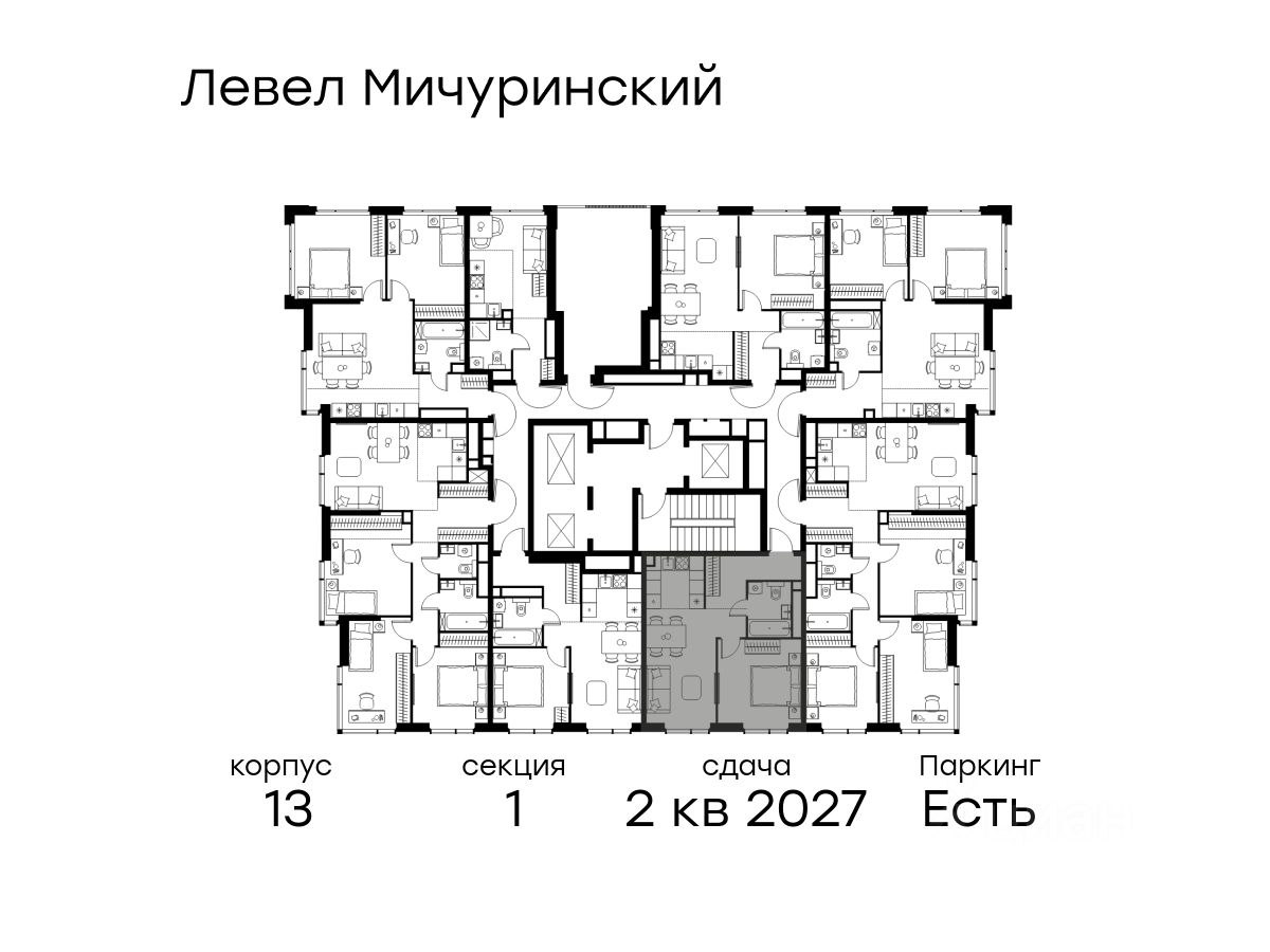 В жилом квартале, расположенном на границе с природным заказником "Долина реки Очаковки", продаётся 2-комнатная квартира площадью 43.60 кв.м без отделки. Квартира расположена на 26 этаже 31-этажного корпуса 13 в жилом комплексе бизнес-класса Левел Мичуринский (компания Level Group/Левел групп).