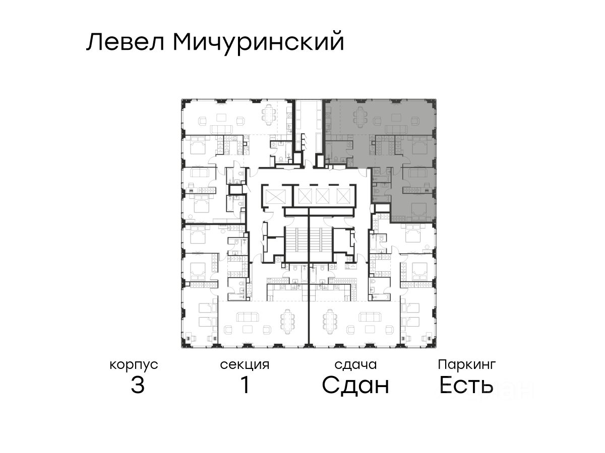 В жилом квартале, расположенном на границе с природным заказником "Долина реки Очаковки", продаётся 4-комнатная квартира площадью 115.10 кв.м без отделки. Квартира расположена на 30 этаже 30-этажного корпуса 3 в жилом комплексе бизнес-класса Левел Мичуринский (компания Level Group/Левел групп).