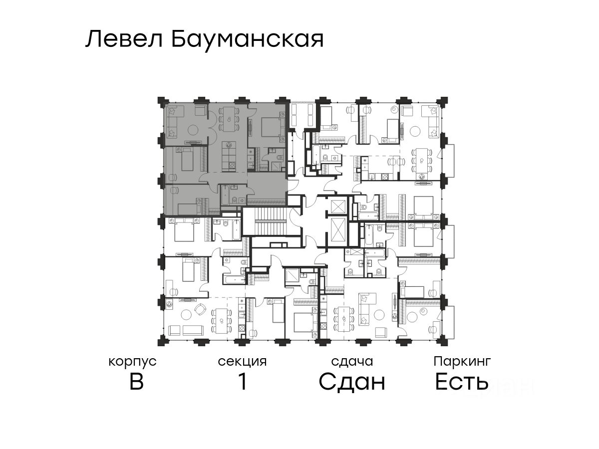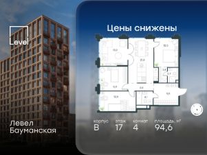 В Басманном районе (ЦАО) продается 4-комнатная квартира площадью 94.60 кв.м без отделки. Квартира расположена на 17 этаже 17-этажного корпуса " B" в жилом комплексе бизнес-класса Левел Бауманская (компания Level Group).
