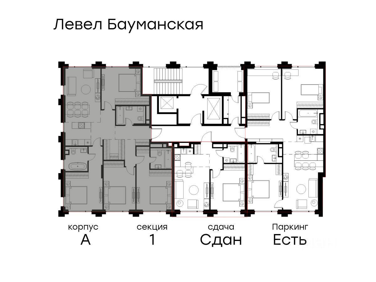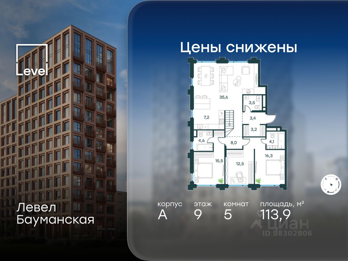 В Басманном районе (ЦАО) продается 5-комнатная квартира площадью 113.90 кв.м без отделки. Квартира расположена на 9 этаже 9-этажного корпуса " A" в жилом комплексе бизнес-класса Левел Бауманская (компания Level Group).