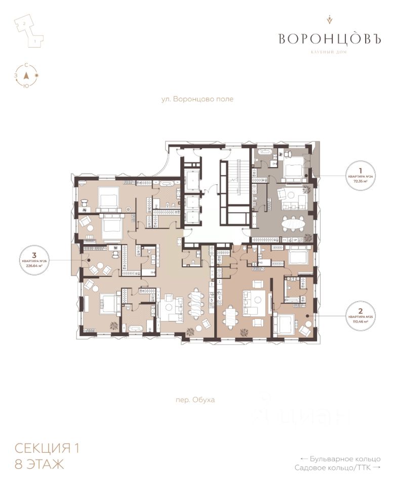 Клубный дом "Резиденции Воронцова" расположен в самом сердце Москвы, в тишине старомосковских переулков с исторической застройкой. Удобный выезд на Садовое и Бульварное кольца, а также на набережную Яузы позволяет быстро добраться до любой точки мегаполиса. Здесь ритм большого города уступает место размеренности и покою. Заповедный сад с ландшафтными композициями и мягкой подсветкой это пространство, где можно наслаждаться жизнью без спешки, сохраняя близость к деловой жизни столицы.