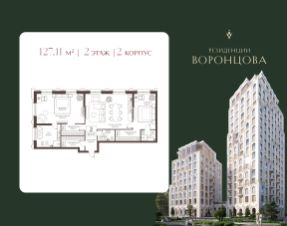 Продается 2-к квартира площадью 127.11 кв. м без отделки. Квартира находится на 2 этаже.