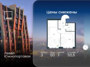 В северной части района Печатники продается 1-комнатная квартира площадью 33.60 кв.м без отделки. Квартира расположена на 50 этаже 68-этажного корпуса 3 в жилом комплексе комфорт-класса Левел Южнопортовая (компания Level Group/Левел групп).
