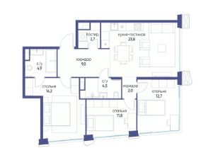 Продаётся 3-комн. квартира от застройщика: общая площадь 87.60 м², жилая м², кухня м², 4-й этаж, жилой квартал "Остров 14", корпус 6 (секция 1). Срок сдачи: 2 квартал 2029 года.