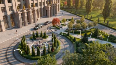 - Внутренние дворы с зонами для отдыха и детскими площадками, а также паркинги для автомобилей.