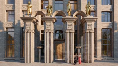 Монументальный неоклассицизм этой высотки сочетает лучшие черты различных эпох — от античности и барокко до ар-деко.