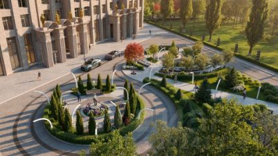 - Внутренние дворы с зонами для отдыха и детскими площадками, а также паркинги для автомобилей.