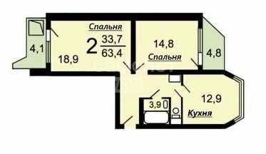63,4 м²