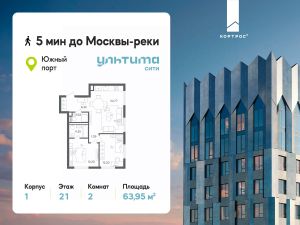 Продаётся 2-комнатная квартира от застройщика ГК "КОРТРОС" в жилом комплексе бизнес-класса УЛЬТИМА Сити. Квартира расположена на 21 этаже 45 этажного корпуса 1. Общая площадь 63,95 м². Без отделки.