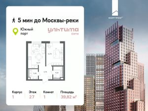 Продаётся 1-комнатная квартира от застройщика ГК "КОРТРОС" в жилом комплексе бизнес-класса УЛЬТИМА Сити. Квартира расположена на 27 этаже 45 этажного корпуса 1. Общая площадь 39,82 м². Без отделки.
