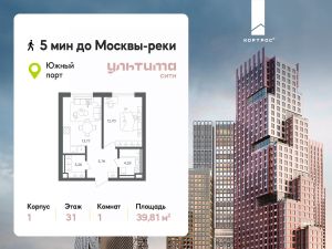 Продаётся 1-комнатная квартира от застройщика ГК "КОРТРОС" в жилом комплексе бизнес-класса УЛЬТИМА Сити. Квартира расположена на 31 этаже 45 этажного корпуса 1. Общая площадь 39,81 м². Без отделки.