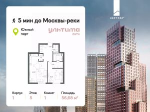 Продаётся 1-комнатная квартира от застройщика ГК "КОРТРОС" в жилом комплексе бизнес-класса УЛЬТИМА Сити. Квартира расположена на 5 этаже 45 этажного корпуса 1. Общая площадь 56,68 м². Без отделки.