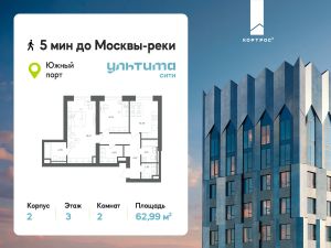 Продаётся 2-комнатная квартира от застройщика ГК "КОРТРОС" в жилом комплексе бизнес-класса УЛЬТИМА Сити. Квартира расположена на 3 этаже 52 этажного корпуса 2. Общая площадь 62,99 м². Без отделки.