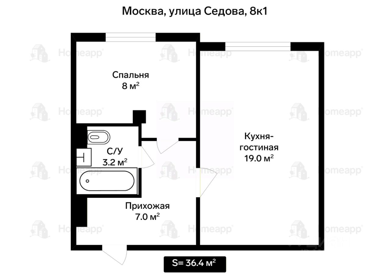 Квартира располагается на 1 этаже современного 17-этажного дома 2002 года постройки. Закрытый тамбур обеспечивает тишину и безопасность. Общая площадь квартиры составляет 36,4 м2. Квартира состоит из просторной кухни-гостиной 19 м2 (именно та планировка, о которой сейчас мечтают многие!), небольшой уютной спальни, совмещенного санузла и функционального коридора, позволяющего удачно разместить дополнительные зоны хранения.