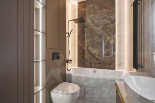 Авторский ремонт из натуральных премиальных материалов: натуральное дерево, латунь, крупноформатная керамика, полированная эмаль, европейская встроенная сантехника высокого класса, полы с подогревом, где плитка, скрытая система кондиционирования, много сценариев света, достаточное мест хранения. Благодаря стеклянным дверям в спальне и гардеробных, удалось сохранить пространство в помещениях. Кондиционирование, приточно-вытяжная вентиляция в каждом помещении, предусматривает как возможность единого климата во всей квартире, так и управления климатом каждого помещения.
