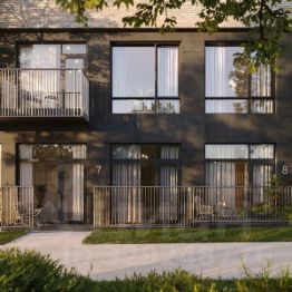 В проекте предусмотрены современные планировки с кухнями-гостиными и гардеробными. Есть форматы с террасами, отдельным входом и палисадниками.