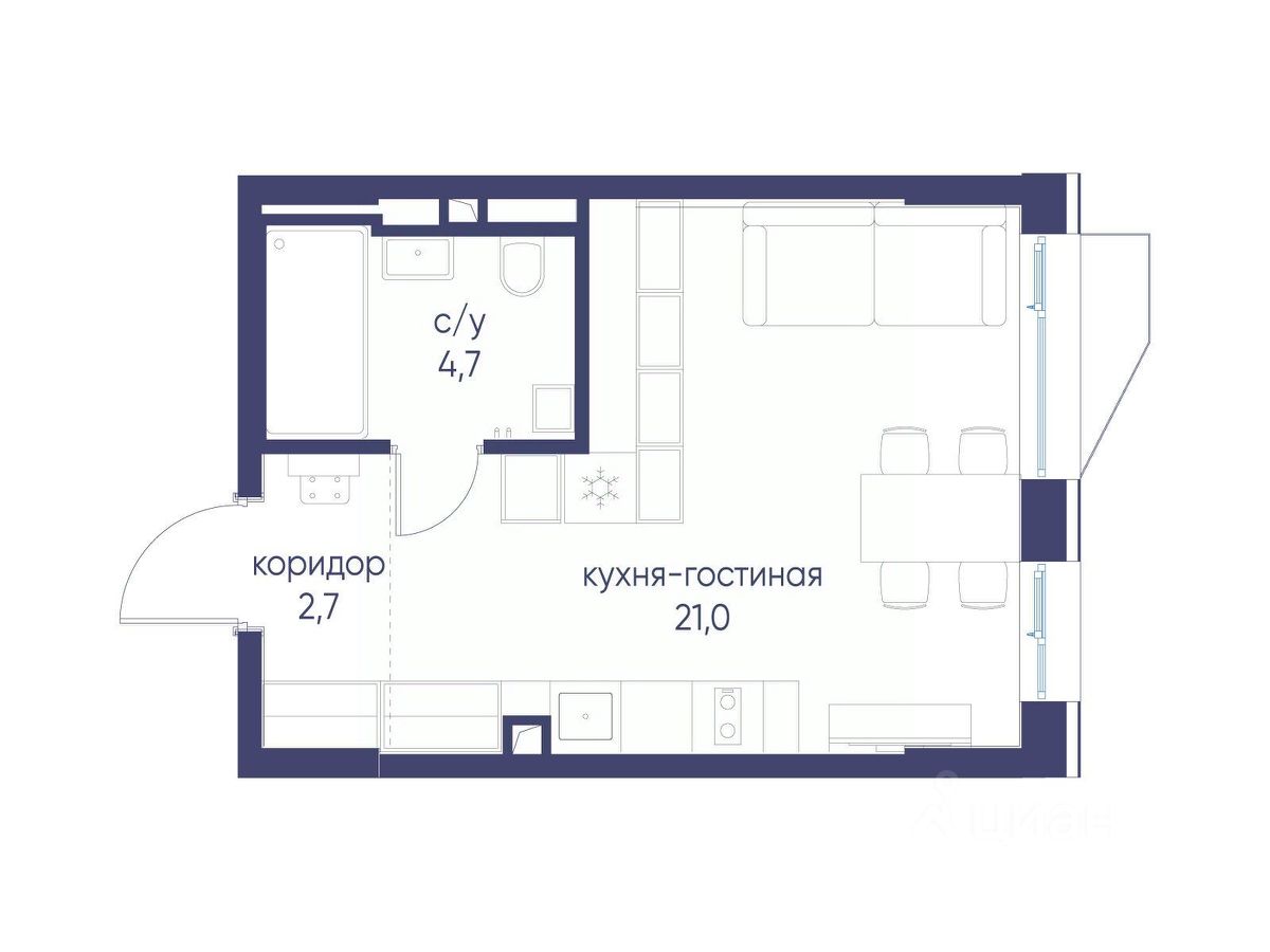 Продается квартира-студия от застройщика: общая площадь 28.40 м², жилая 16.00 м², кухня 5.00 м², 2-й этаж, жилой квартал "Гордость", корпус 40 (секция 1). Срок сдачи: 2 квартал 2029 года.