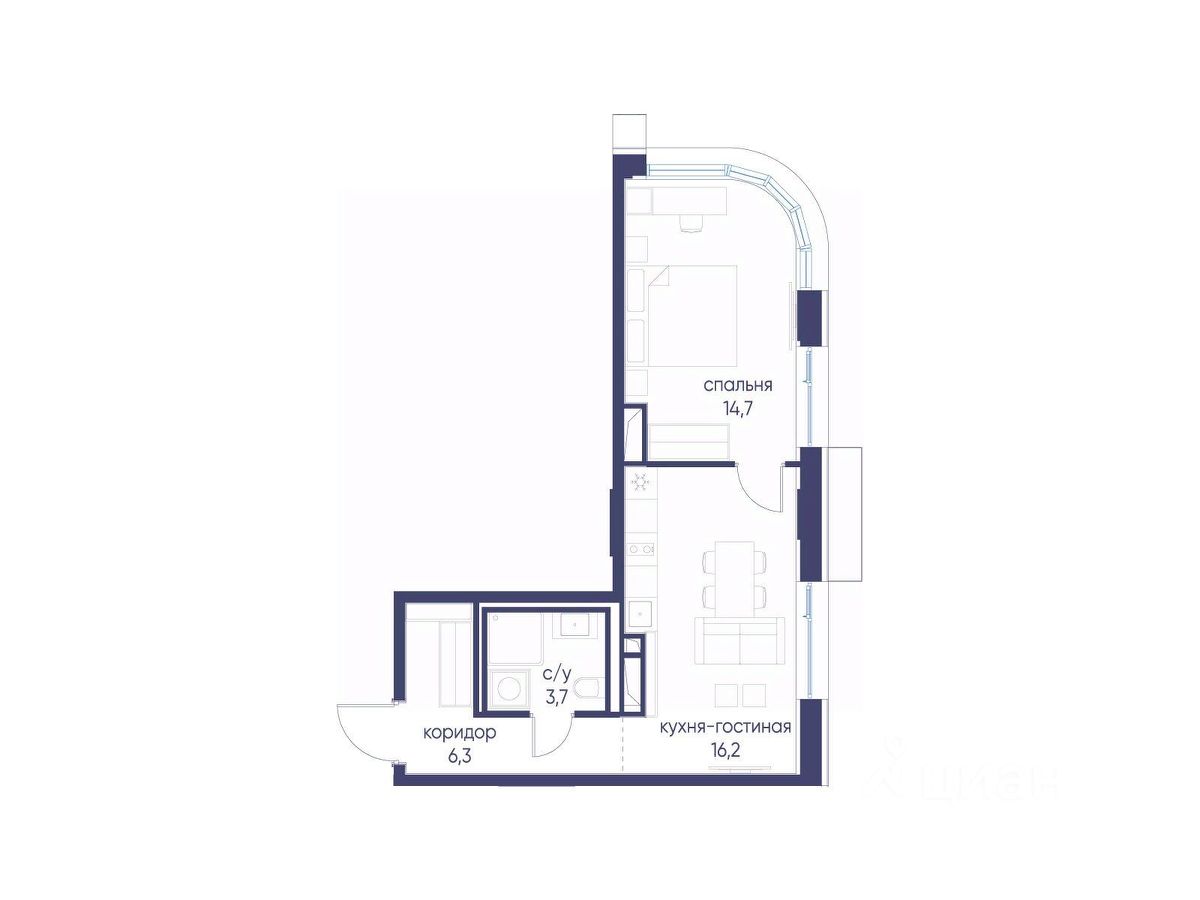 Продается 1-комнатная квартира от застройщика: общая площадь 41.50 м², жилая 14.70 м², кухня 16.20 м², 2-й этаж, жилой квартал "Гордость", корпус 40 (секция 1). Срок сдачи: 2 квартал 2029 года.