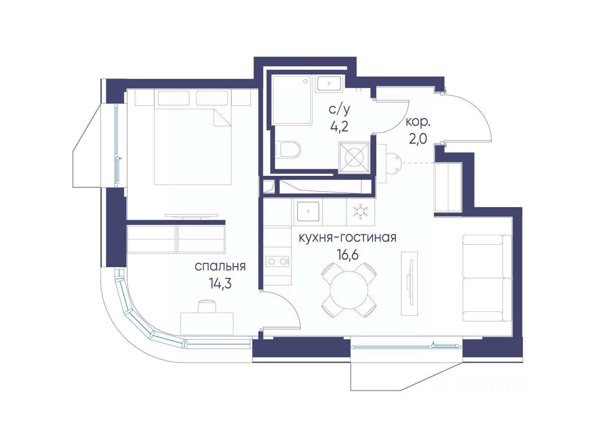 Продается 1-комнатная квартира от застройщика: общая площадь 37.10 м², жилая 14.30 м², кухня 16.60 м², 3-й этаж, жилой квартал "Гордость", корпус 40 (секция 1). Срок сдачи: 2 квартал 2029 года.
