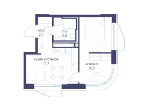 Продается 1-комнатная квартира от застройщика: общая площадь 36.90 м², жилая 16.00 м², кухня 14.70 м², 11-й этаж, жилой квартал "Гордость", корпус 40 (секция 1). Срок сдачи: 2 квартал 2029 года.