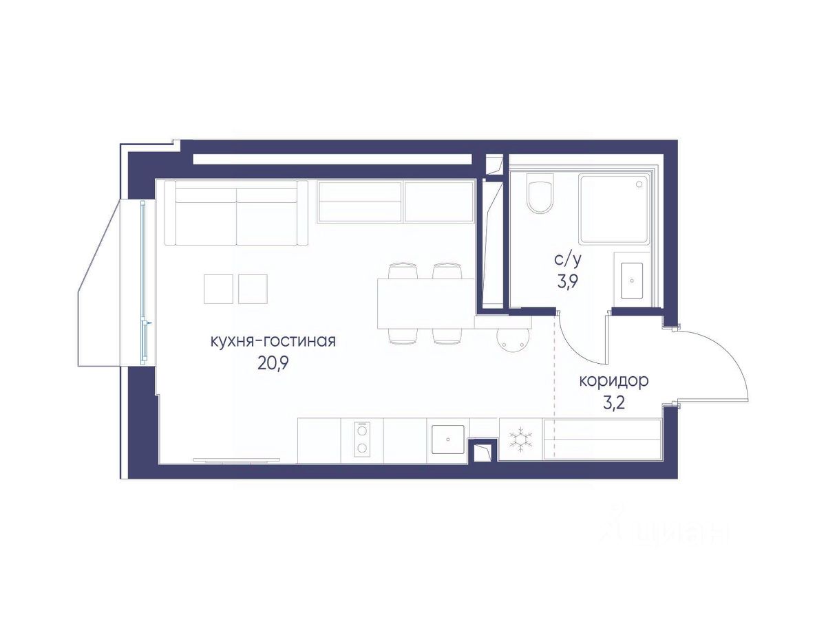 Продается квартира-студия от застройщика: общая площадь 28.00 м², жилая 15.90 м², кухня 5.00 м², 11-й этаж, жилой квартал "Гордость", корпус 40 (секция 1). Срок сдачи: 2 квартал 2029 года.
