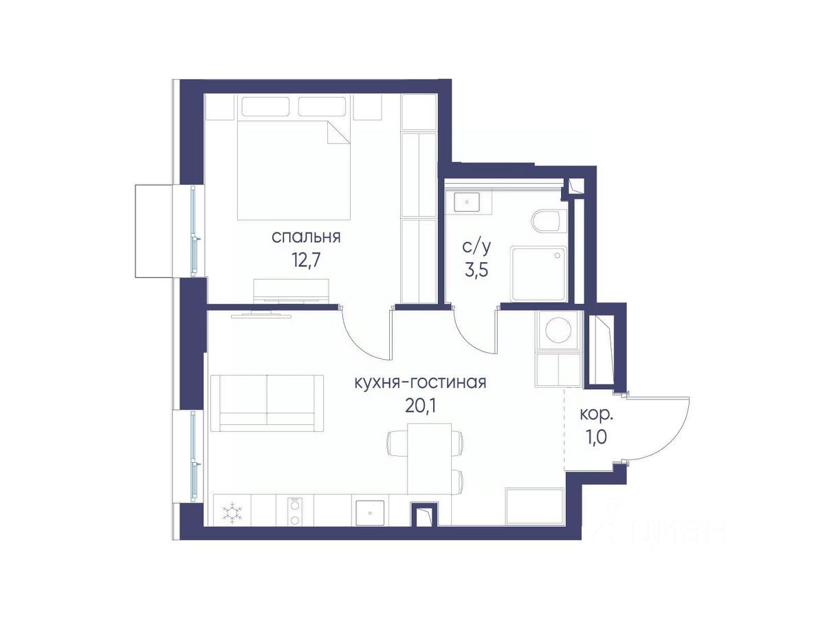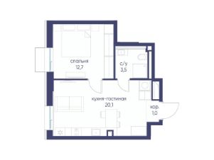Продается 1-комнатная квартира от застройщика: общая площадь 36.90 м², жилая 12.70 м², кухня 20.10 м², 11-й этаж, жилой квартал "Гордость", корпус 40 (секция 1). Срок сдачи: 2 квартал 2029 года.