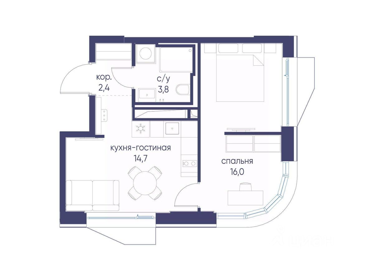 Продается 1-комнатная квартира от застройщика: общая площадь 36.90 м², жилая 16.00 м², кухня 14.70 м², 18-й этаж, жилой квартал "Гордость", корпус 40 (секция 1). Срок сдачи: 2 квартал 2029 года.