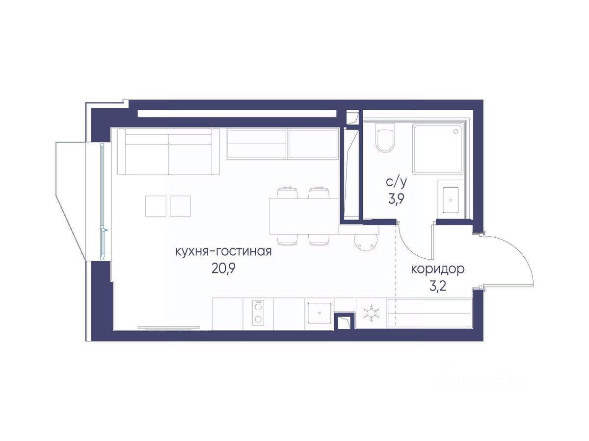 Продается квартира-студия от застройщика: общая площадь 28.00 м², жилая 15.90 м², кухня 5.00 м², 18-й этаж, жилой квартал "Гордость", корпус 40 (секция 1). Срок сдачи: 2 квартал 2029 года.